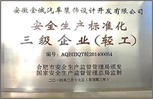 2017年08月 安徽金誠車輛工程有限公司通過安全生產標準化三級企業(輕工)驗收;