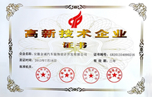 20132013年7月16日 安徽金誠汽車裝飾設計開發有限公司被評為“國家級高新技術企業”。
